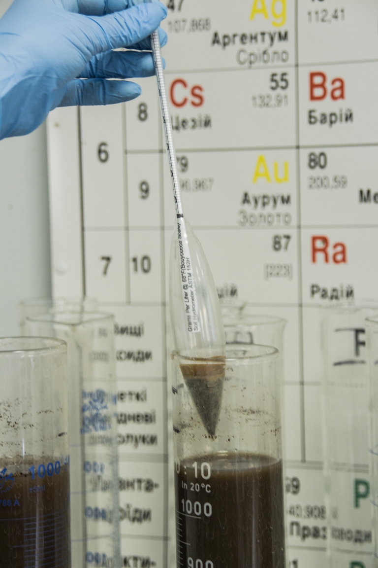 Special grinder Dayton, water preparation system Barnstead, AAS and UV-Vis-spectrophotometers and also ICP Emmision spectrometer Thermo Scientific iCAP 6300 with computer management and autosamplers, allow to define content and dosage of macro- and microelements in soil and plants.